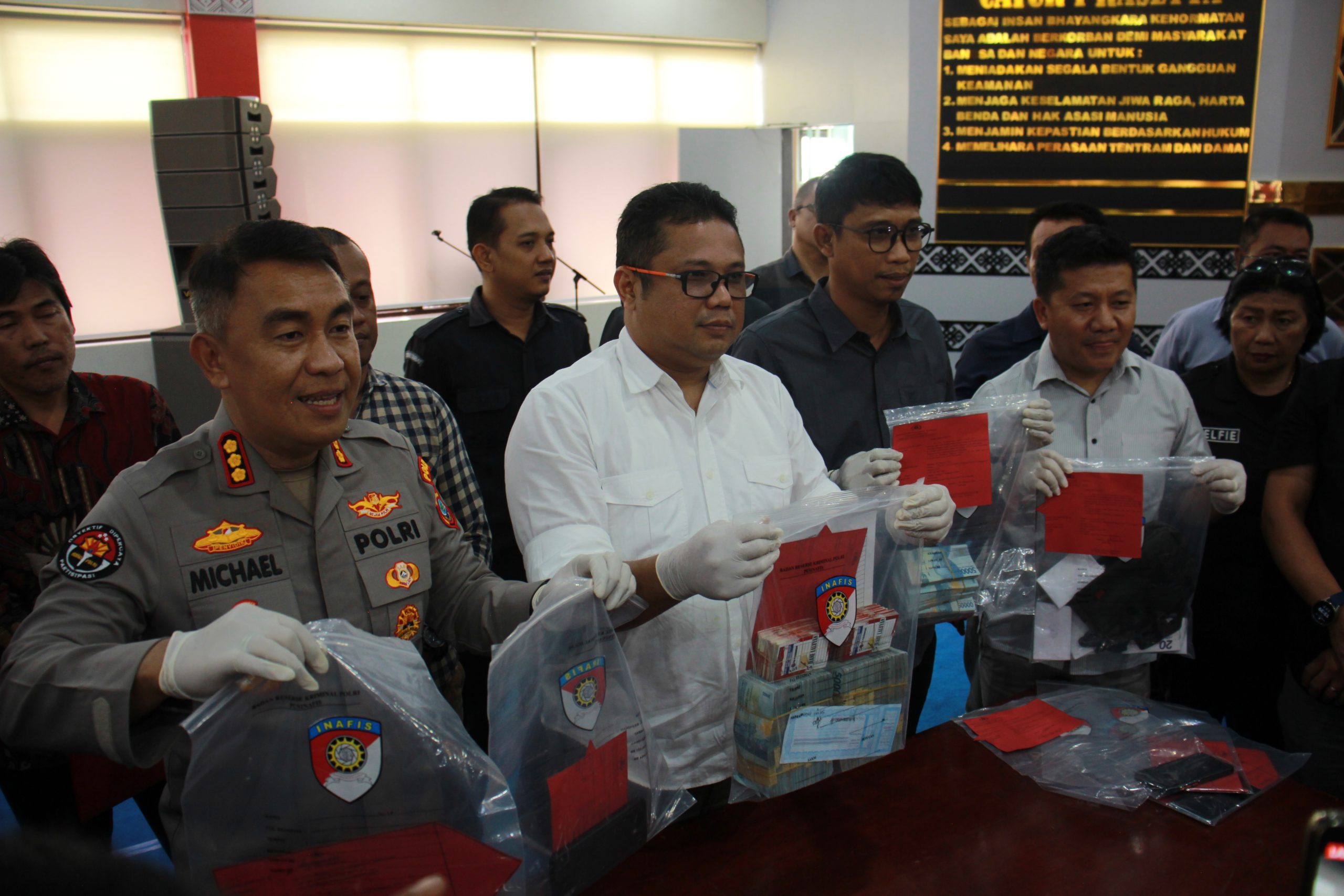 Konferensi pers dipimpin oleh Kabid Humas Polda Sulut Kombes Pol Michael Irwan Thamsil, didampingi Dirreskrimum Polda Sulut Kombes Pol Gani Siahaan dan dua Komisioner Bawaslu Sulut, pada Selasa (27/2/2024) siang.