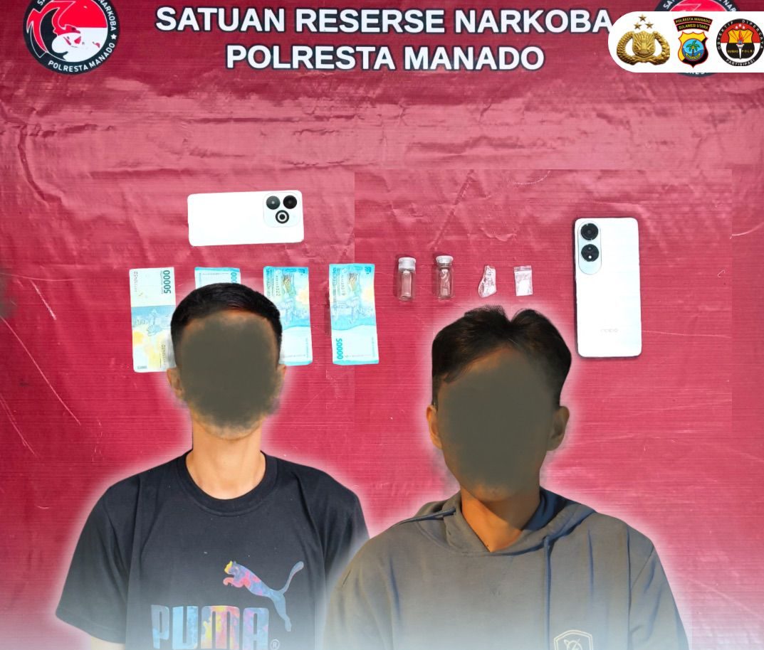 Dua pria berinisial D.P.R (23) dan D.V.M.E.T (28) diamankan aparat kepolisian di kawasan Tell’s Residence, Kelurahan Bumi Nyiur, Kecamatan Wanea, pada Senin, 16 Februari 2026, sekitar pukul 13.45 WITA.