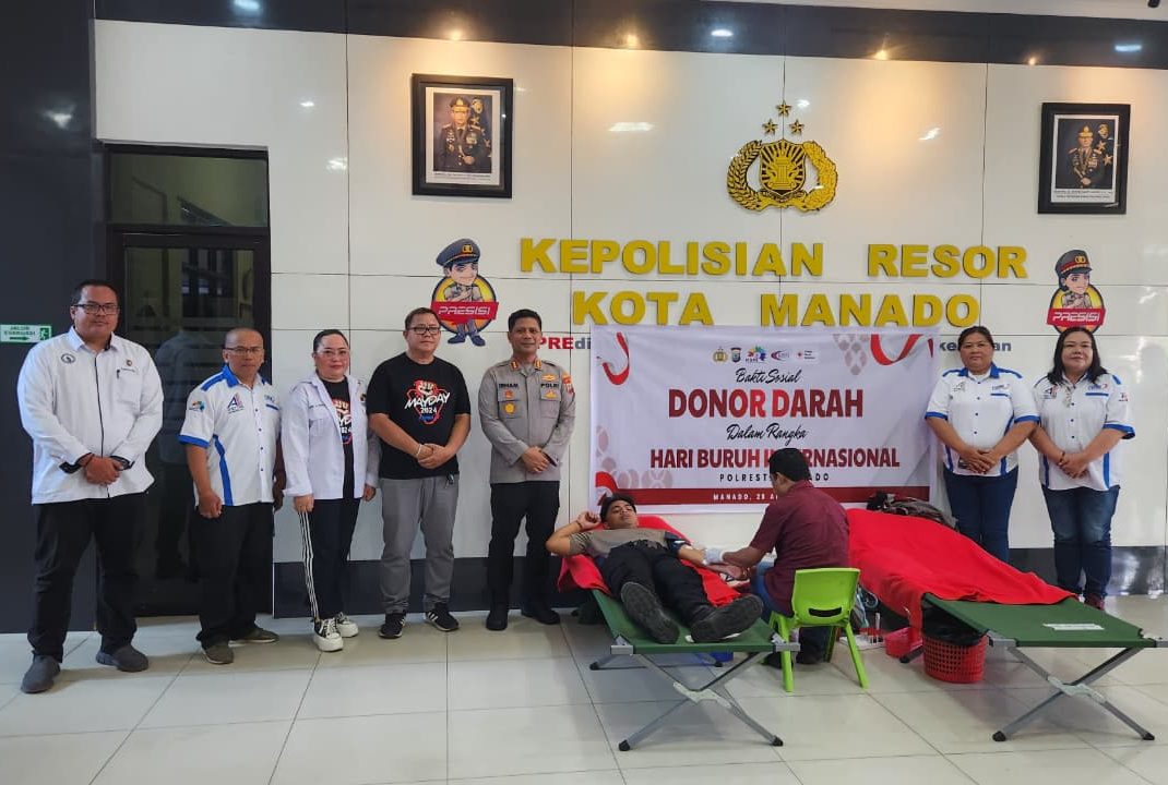 Nyiurpos.com – Manado Dalam rangka memperingati Hari Buruh Internasional, Polresta Manado menggelar kegiatan bakti sosial donor darah yang dilaksanakan di Lobby Polresta Manado pada Selasa (28/4/2026), sebagai bentuk kepedulian terhadap sesama serta kontribusi nyata dalam bidang kemanusiaan.